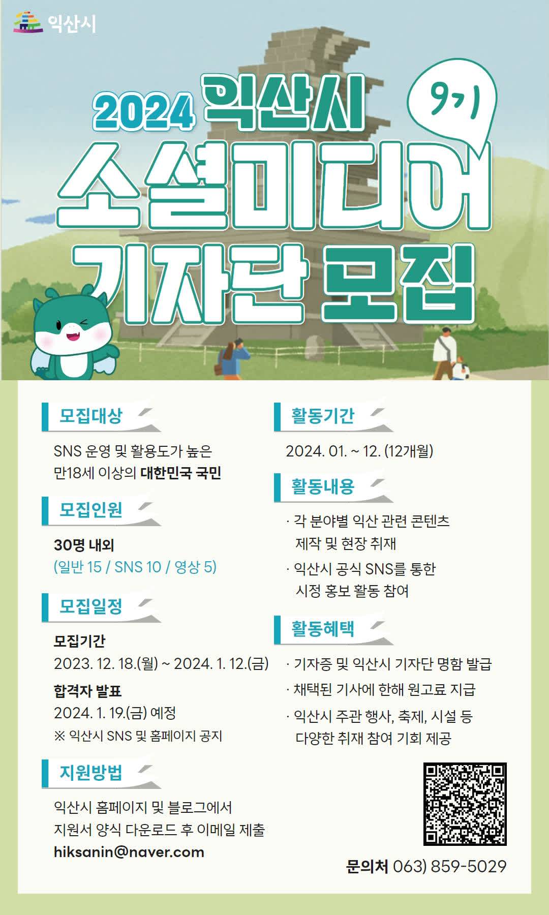 첨부파일 : 2024 사회기자단 지원서.hwpx 파일 다운로드 □ 지원대상 : 조달청 및 조달정책에 관심 있는 대한민국 국민 누구나 □ 모집인원 및 분야 : 약 15명(일반기사, 웹툰, 영상) □ 모집기간 : 2024. 1. 15.(월)~1.31(수)□ 공고 : 2024.2.16.(금)□ 지원방법 : 조달청 블로그(채용기사 블로그 링크)에 첨부된 지원서 이용 → 이메일로 제출( 조달청 대변인실 [email protected])□ 활동기간 : 2024년 3월 ~ 11월 □ 활동 ○ 대국민 대상 조달정책 관련 기사 취재 및 집필 ○ 조달청 SNS를 통한 정책소통 및 공감대 전파 □ 활동의 장점 ○ 조달청 공식 블로그에 기사 게재 시 소정의 원고비 지급 ○ 우수 기자에게 조달청장 표창 및 시상 ○ 조달청 행사 등 취재 시 교통비 지원 □ 제출서류 제출 : 지원서 1부 ○ 일반글 : ① 조달청 사회신고단 지원동기(A4 1매 이내), ② 관심조달정책 관련 기사( ○ 웹툰 : ① 조달청 사회신고단 지원동기 조달청 사회기자단(500자 이내), ② 관심 있는 조달정책 관련 기사(A4 1면 이내) ○ 영상 : ① 조달청 사회기자단 지원 동기(500자 이내), ② 직접 제작 영상 링크 (YouTube 등) 구매 정책 참고 링크 ① 혁신 제품 – 일상 속 혁신 제품을 찾아보세요! 대전 편 (with 꿈돌이) https://youtu.be/tDn3OVpky-0?si=KSHT-EqLUsRjFqJ_② 혁신제품 해외 수출 – 세계 최초 점자 디스플레이 ‘닷패드’ https://youtu.be/Mm6oR1oCQpo?si=smGW3m4zCXBUoNqf- ‘큰별선생님’이 해외로 진출한 조달청의 혁신상품은 무엇일까요??? https://youtu.be/_e-nZXPXUVY?si=8CbgTIg1KISJC8cE ③ 정부조달 문화상품&전통주 – 우리 전통문화를 되살려라! 정부조달 문화상품 https://youtu.be/g_8H88URy2I?si=Y3Z6P8gF2tW8sydM- 공공기관에서 가장 많이 구매하는 전통상품은 무엇인가요? https://blog.naver.com/ppspr/223112171135- 솔직하고 깔끔한 본격 맛! 막걸리계의 헤르메스, ‘해창 막걸리’ https://blog.naver.com/ppspr/223199581287 ④ 원료 비축 – ‘큰별선생님’ 원료 공급망 위기시 누가 대응할 것인가??? https://youtu.be/8DP-O4ePaKc?si=DvvtaL8lStVUp7YI- “국가 비축량이 궁금해요! ‘경제보장품목’이란 무엇인가?” https://blog.naver.com/ppspr/223319245145 – 테슬라가 주목한 악마의 구리, 니켈 https://youtu.be/zMgufQ80O9s?si=nEfTj9Aq2PoFfk4B⑤ 나라시장 여행상품 – 후회하게 될 숲 속 쉼표 6월1일 놓치면 ‘국립횡성산림센터’ https://youtu.be/i6MUGbdddzI?si=BKER0qLC44MJyvOf- 차분한 시간 속 가을 여행지 찾기 https://blog.naver.com/ppspr/223198364773 우리는 본다 당신의 지원을 기대합니다.